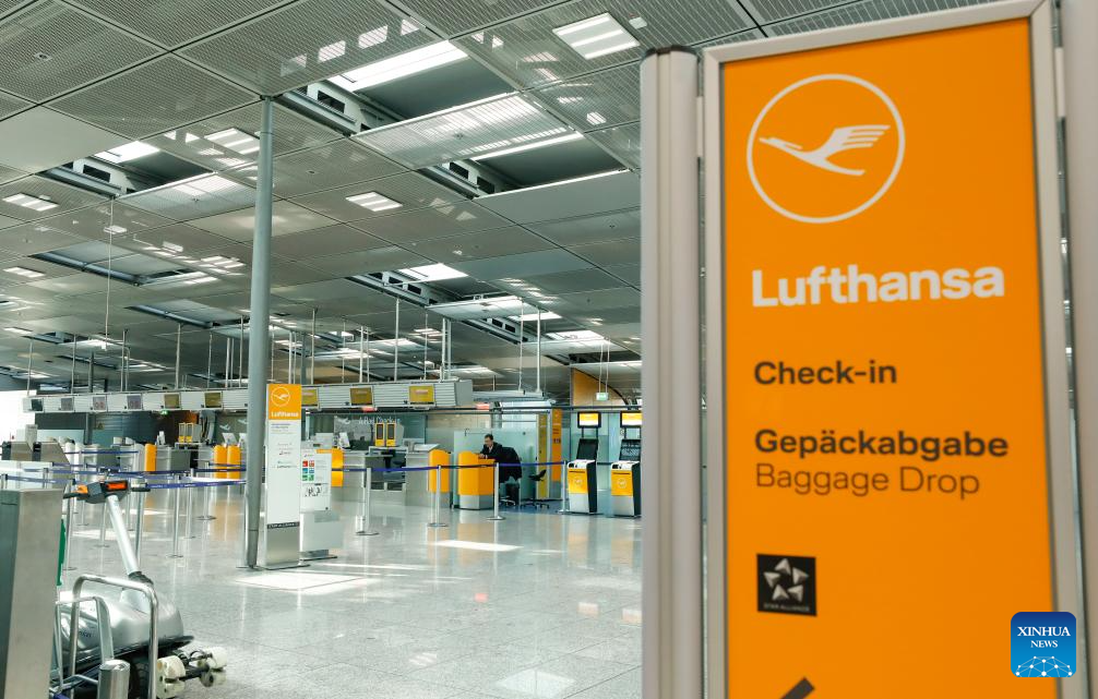 This photo taken on March 10, 2025 shows the Lufthansa service desk at the Frankfurt Airport in Frankfurt, Germany. Over 1,000 flights at the Frankfurt Airport have been affected as airport workers went on strike on Monday. (Xinhua/Zhang Fan)