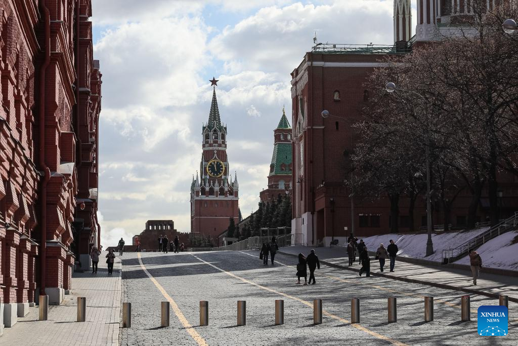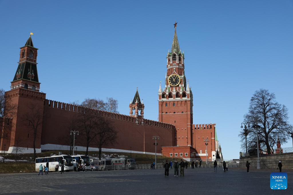 This photo taken on March 18, 2025 shows an exterior view of the Kremlin in Moscow, Russia. Russian President Vladimir Putin and U.S. President Donald Trump are set to discuss bilateral ties and the Ukraine crisis in a phone call, Kremlin Spokesman Dmitry Peskov said Tuesday. Peskov said the conversation would cover a "large number of issues," including the "further normalization of bilateral relations" and a settlement of the Ukraine crisis. He added that the call was expected to take place between 4 p.m. and 6 p.m. Moscow time (1300-1500 GMT). (Xinhua/Bai Xueqi)