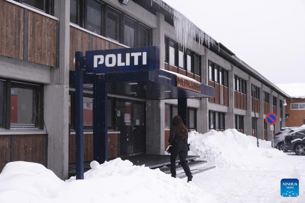 A police officer enters a police station in Nuuk, capital of Greenland, an autonomous territory of Denmark, March 24, 2025. (Xinhua/Zhang Yuliang)