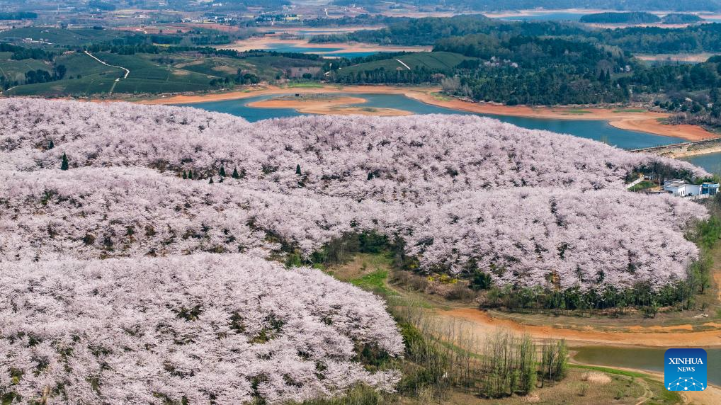 View of cherry blossoms in Gui'an New Area of China's Guizhou -Xinhua