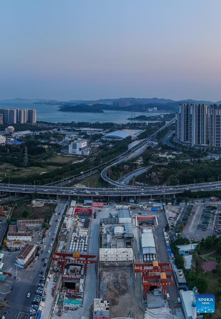 This photo taken on March 25, 2025 shows the construction site of the Shantou Bay undersea tunnel in Shantou City, south China's Guangdong Province. The Shantou Bay undersea tunnel, the world's first single-hole double-track undersea tunnel with a designed speed of 350 km per hour, was broken through on Wednesday. The 9,781-meter-long tunnel is a project of the Shantou-Shanwei high-speed railway. (Xinhua/Liu Dawei)
