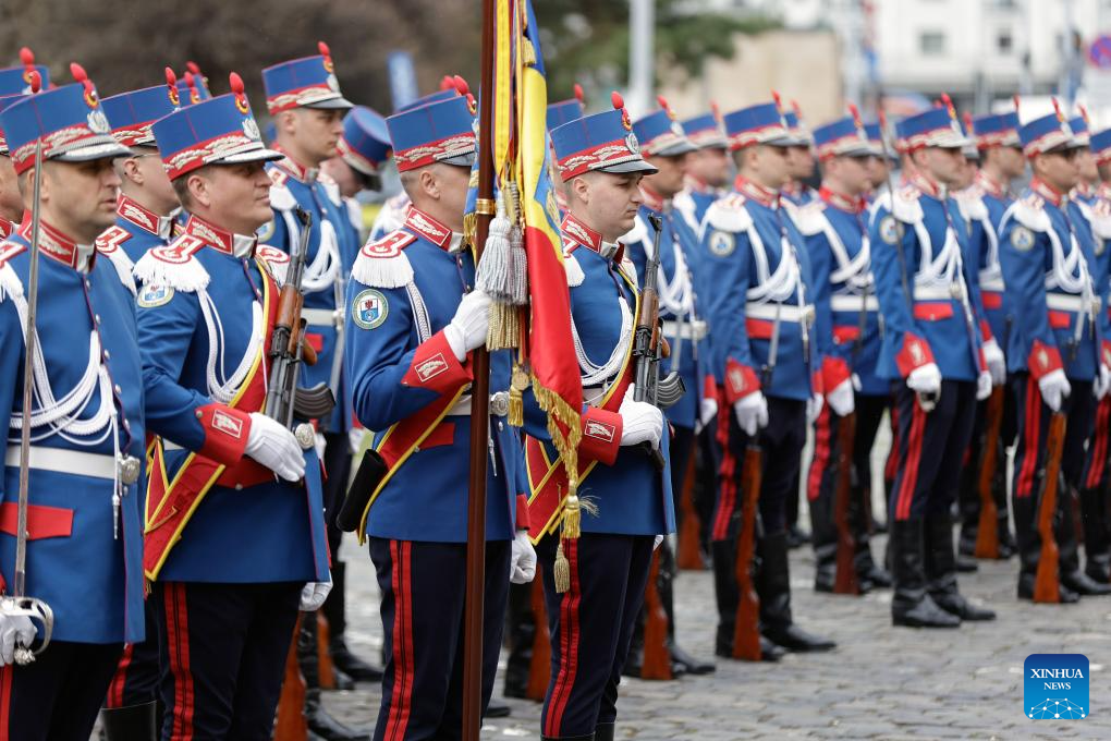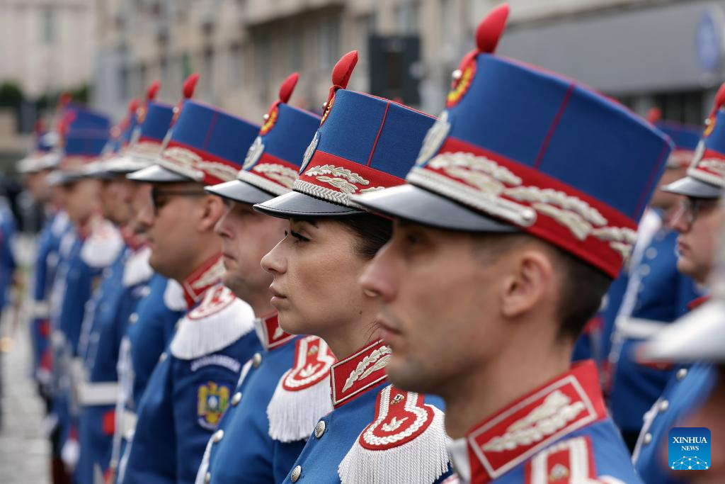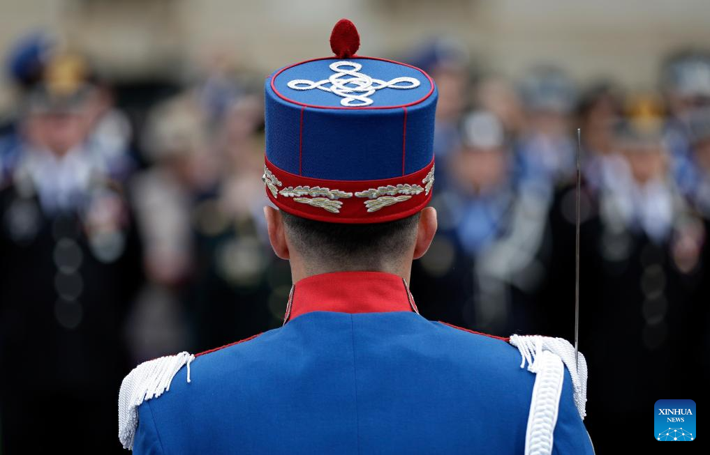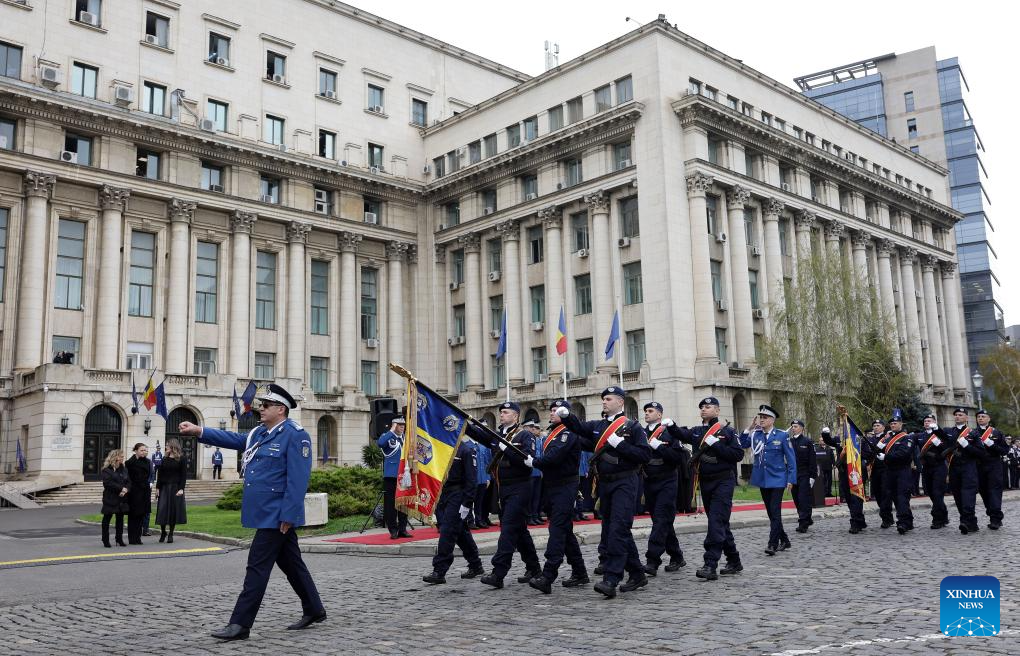 A Gendarmerie unit marches during a ceremony marking Romanian Gendarmerie Day in Bucharest, Romania, April 3, 2025. (Photo by Cristian Cristel/Xinhua)