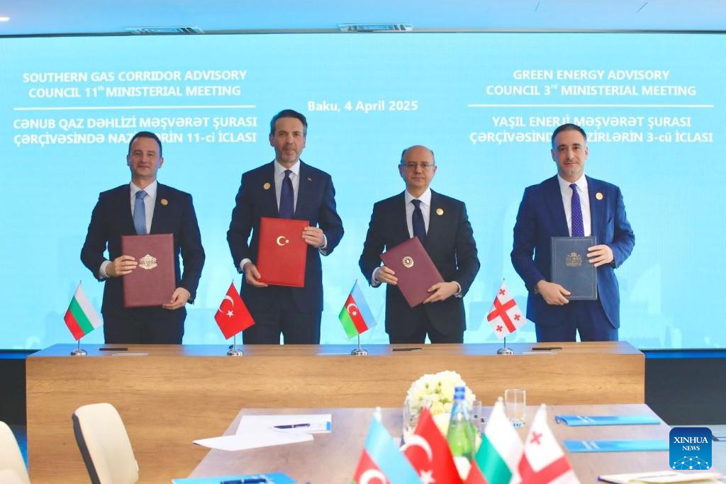 BAKU, April 4 (Xinhua) -- Azerbaijan, Georgia, Türkiye and Bulgaria agreed on Friday to establish a Green Energy Corridor to enhance regional electricity transmission and trade, Azerbaijan's Ministry of Energy reported.