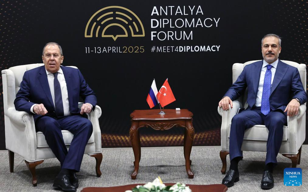 ANKARA, April 12 (Xinhua) -- Turkish Foreign Minister Hakan Fidan and his Russian counterpart Sergey Lavrov met on Saturday to discuss the Ukraine conflict and the safety of navigation in the Black Sea.