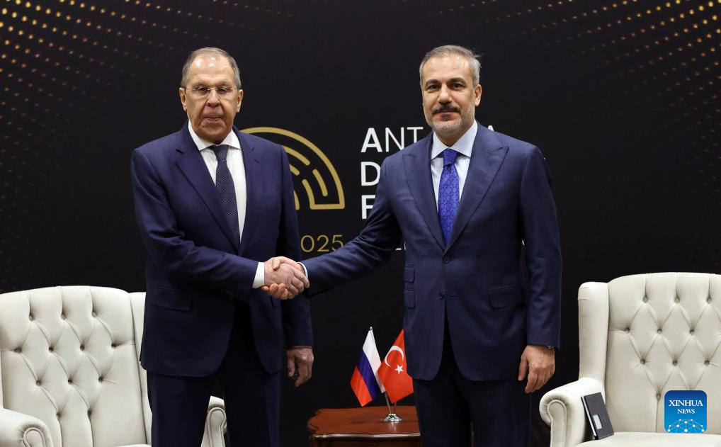 The two ministers met in Türkiye's southern coastal city of Antalya on the sidelines of the Antalya Diplomacy Forum, semi-official Anadolu Agency quoted anonymous Turkish diplomatic sources as saying. (Mustafa Kaya/Handout via Xinhua)