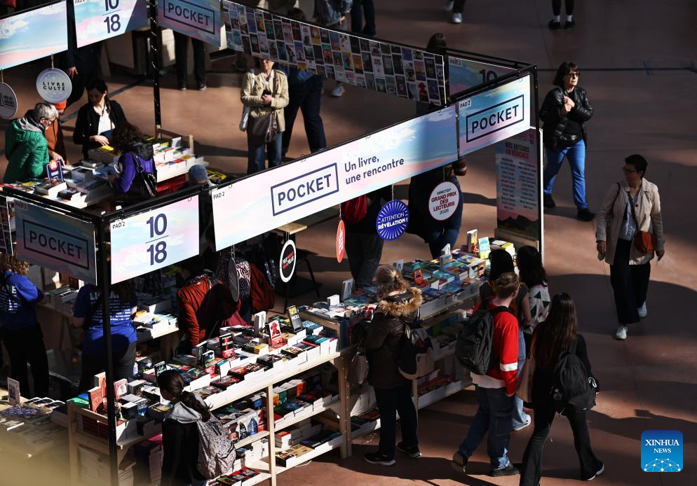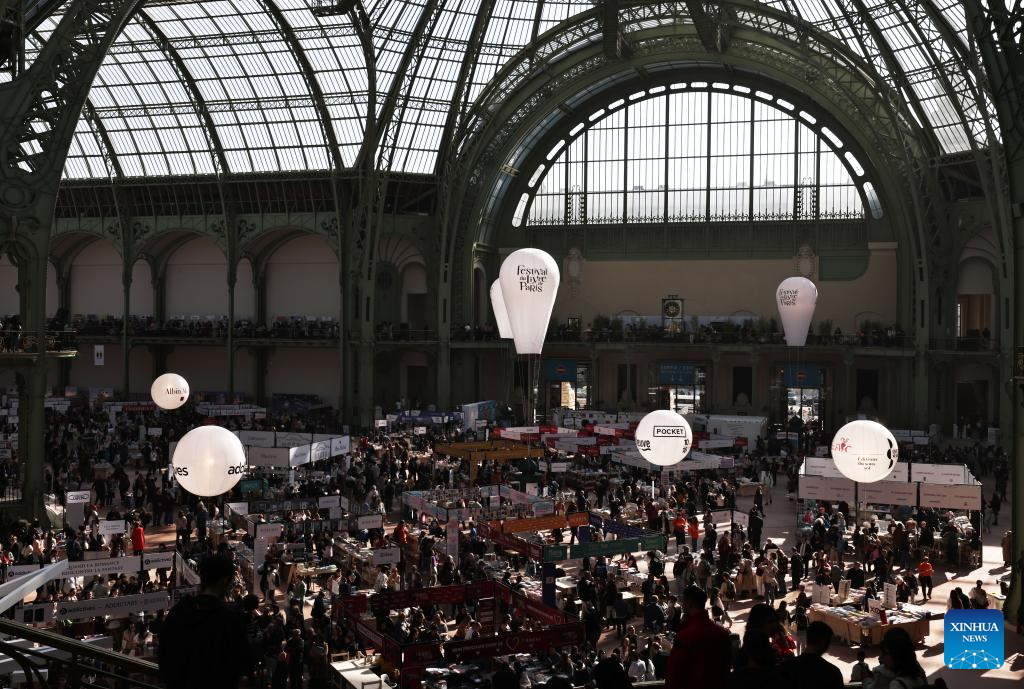 People attend the Paris Book Festival 2025 at the Grand Palais in Paris, France, April 11, 2025. The three-day event opened here on Friday. (Xinhua/Gao Jing)