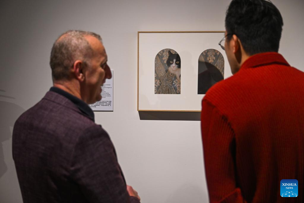 Visitors look at a Chinese painting artwork during the International Chinese Language Day celebration at Bogazici University in Istanbul, Türkiye, April 18, 2025. (Xinhua/Liu Lei)