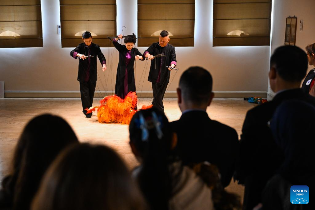 Chinese artists perform Quanzhou string puppetry of southeast China's Fujian Province during the International Chinese Language Day celebration at Bogazici University in Istanbul, Türkiye, April 18, 2025. (Xinhua/Liu Lei)
