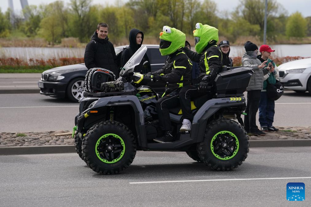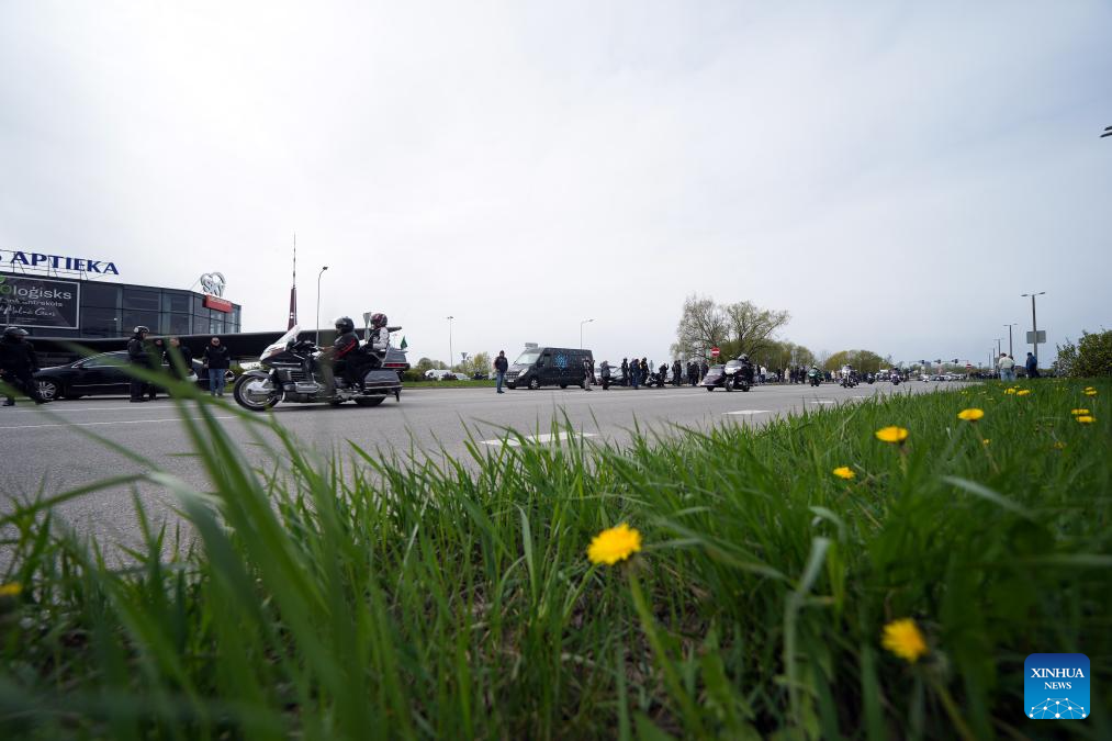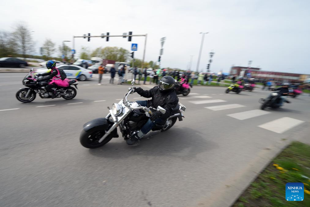Motorcyclists participate in a motorcycle parade in Riga, Latvia, April 26, 2025. (Photo by Edijs Palens/Xinhua)