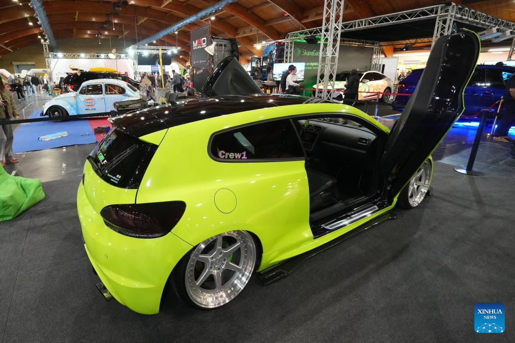 A modified Volkswagen car is displayed during the Baltic Motor Show Riga "Auto 2025" in Riga, Latvia, April 27, 2025. (Photo by Edijs Palens/Xinhua)