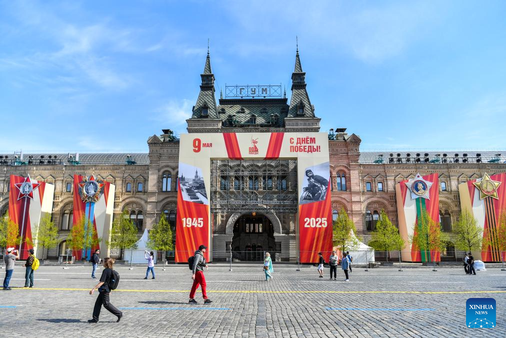 People walk past the Red Square in Moscow, Russia, April 21, 2025. (Xinhua/Cao Yang)