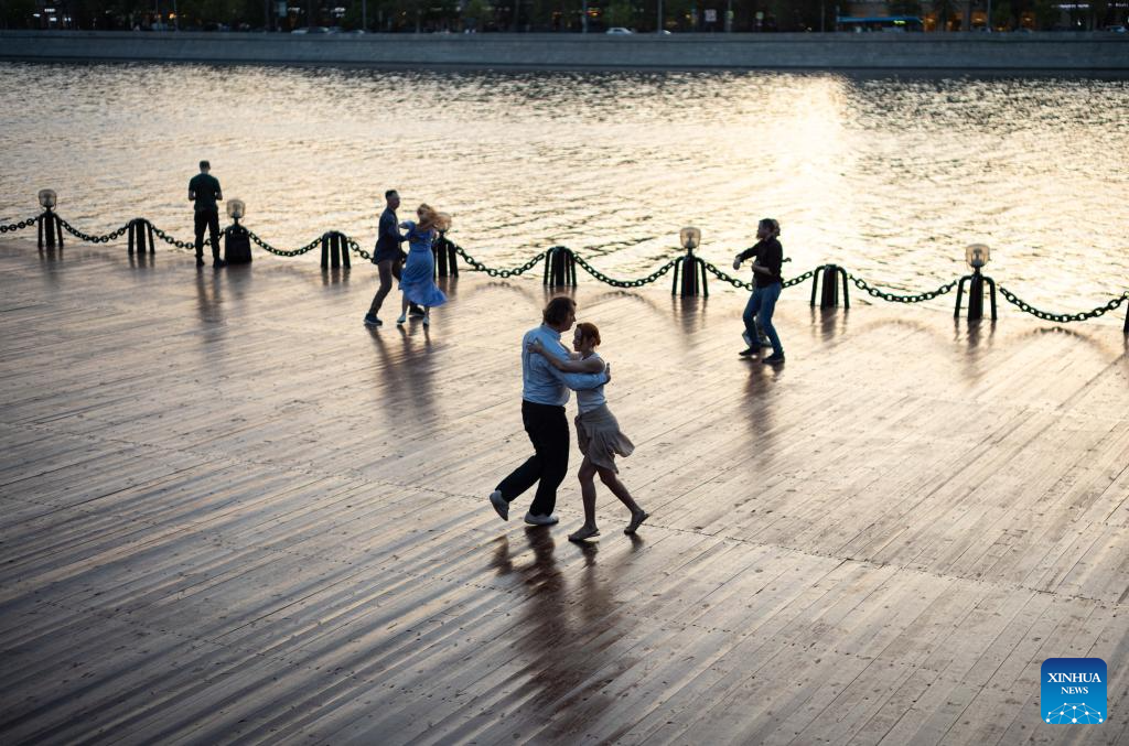People dance at the Gorky park in Moscow, Russia, April 22, 2025. (Xinhua/Bai Xueqi)