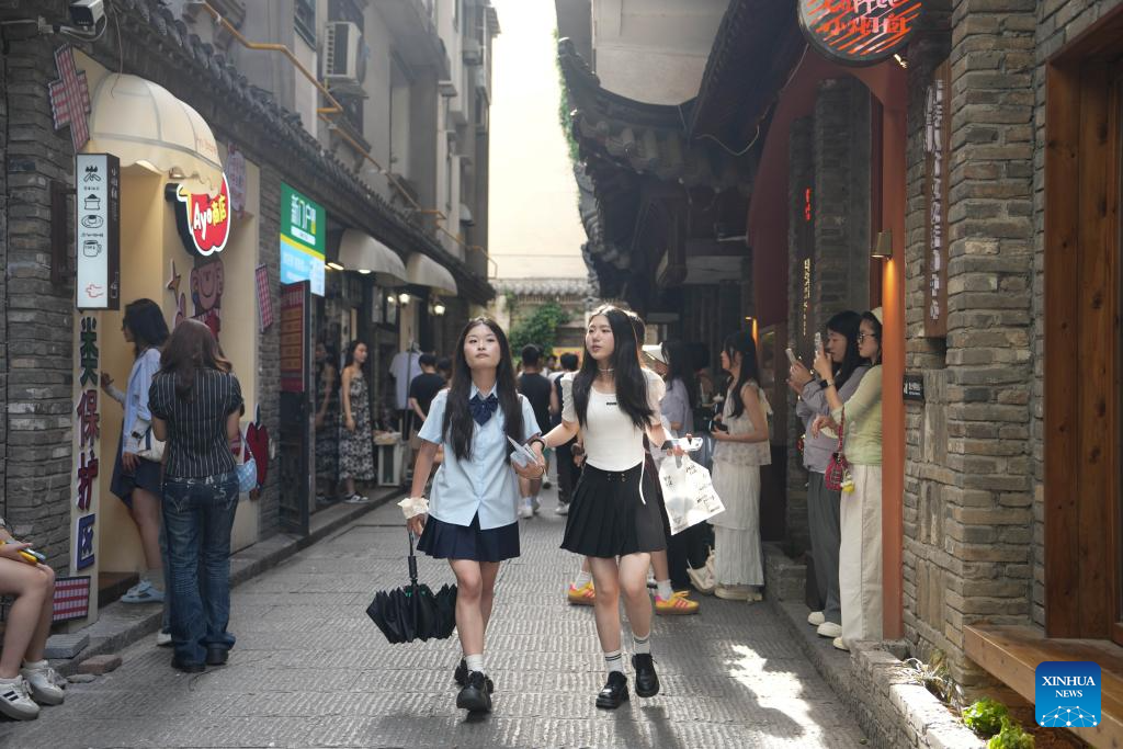 People visit an alley in Changsha, central China's Hunan Province, May 2, 2025. People across China enjoy the ongoing May Day holiday in various ways. (Xinhua/Xue Yuge)