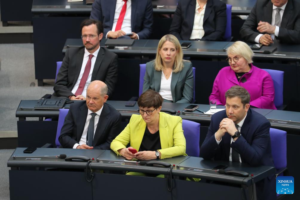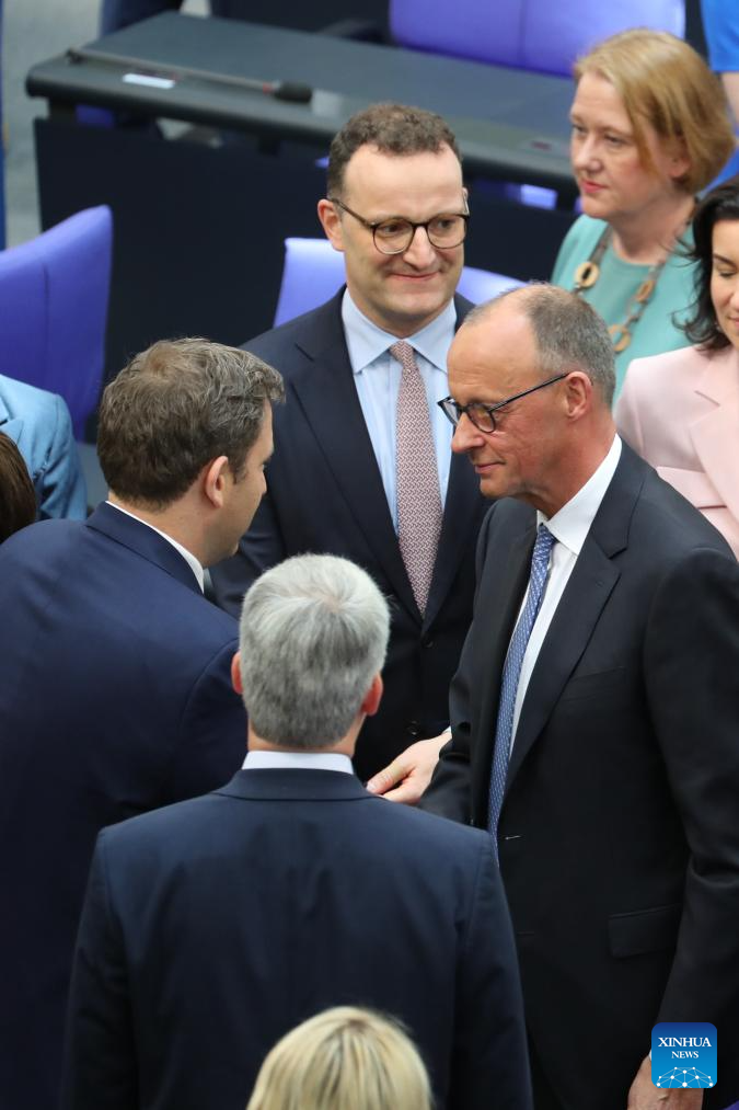 BERLIN, May 6 (Xinhua) -- Friedrich Merz, leader of Germany's conservative Christian Democratic Union (CDU), was sworn in as Chancellor on Tuesday during a session of the Bundestag, the country's lower house of parliament.
