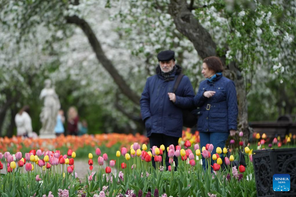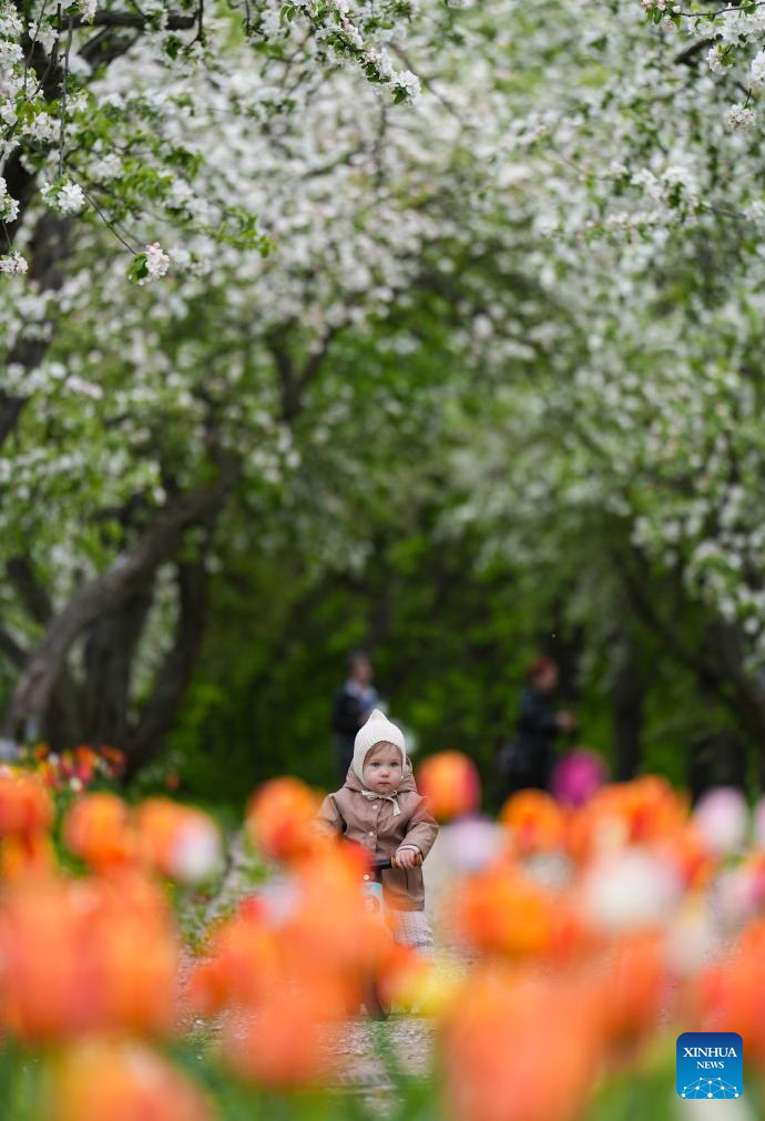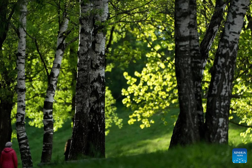 People walk in Kolomenskoye Park in Moscow, Russia, May 5, 2025. (Xinhua/Lai Xiangdong)