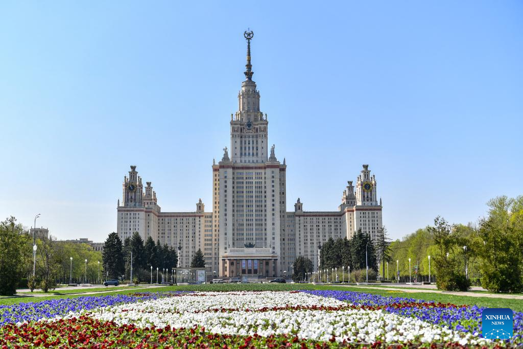 This photo taken on May 5, 2025 shows the main building of Moscow State University in Moscow, Russia. (Xinhua/Ding Haitao)