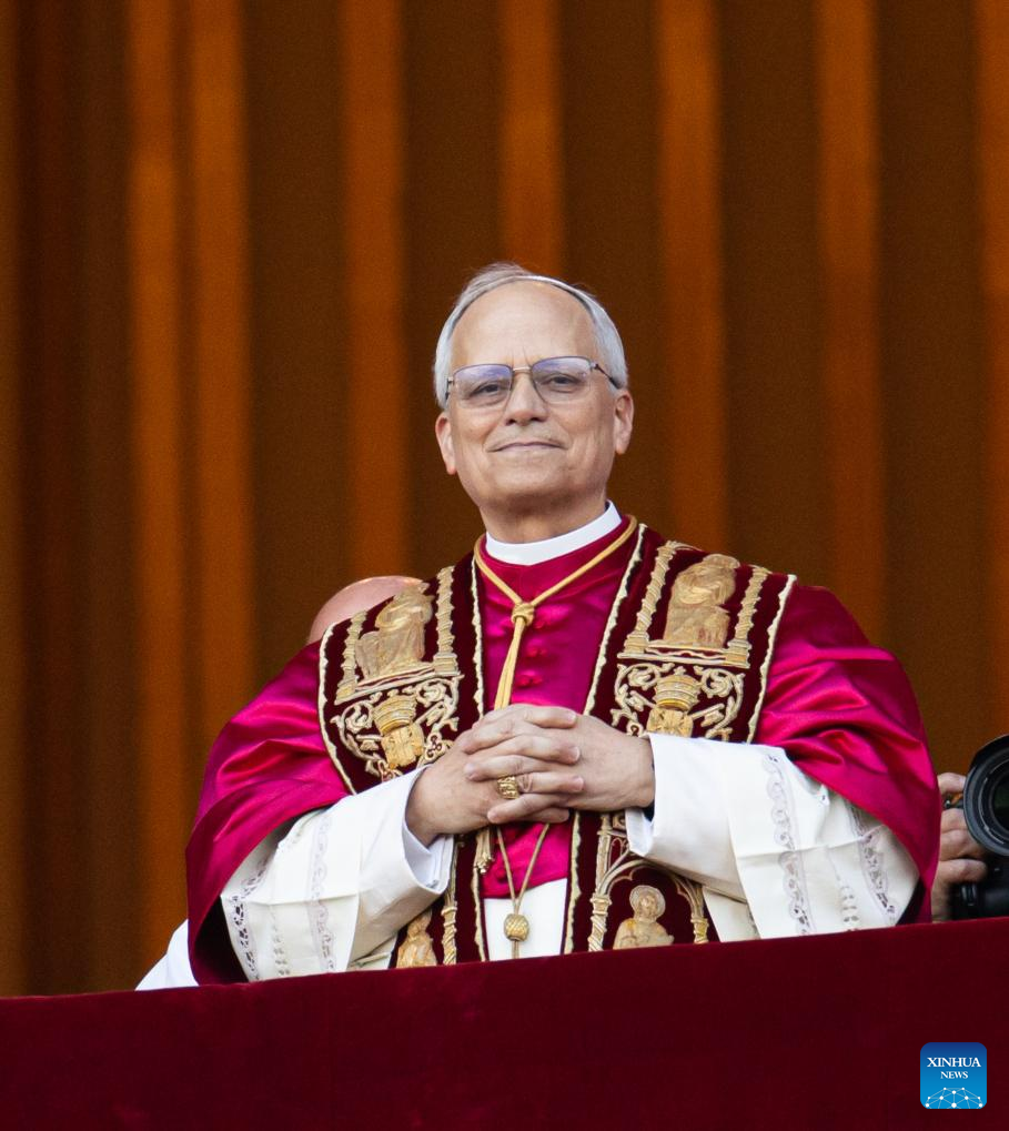 Robert Francis Prevost is seen after being elected the new pope in Vatican City, on May 8, 2025. Robert Francis Prevost, the cardinal of the United States, was elected the new pope on the second day of secret ballots in the cardinals' conclave held in Vatican City. The name he chose as the new pope was Leo XIV. (Xinhua/Li Jing)