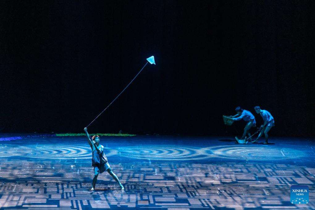 Artists perform during the Chinese Tibetan dance theater production "Shambhala" at the Christmas Theater in Athens, Greece, on May 10, 2025. (Xinhua/Marios Lolos)