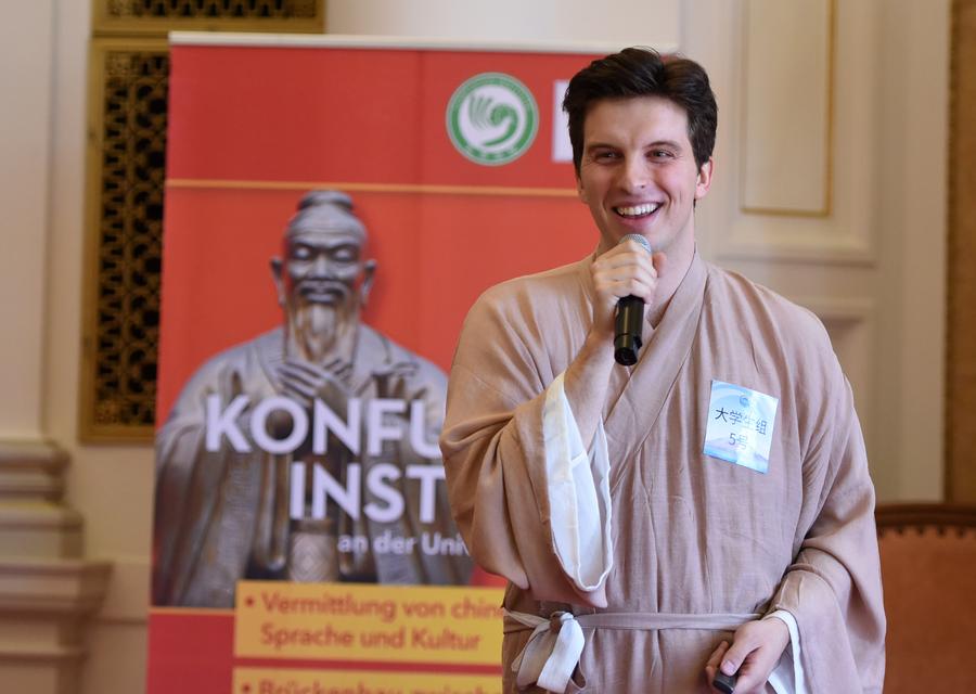 GRAZ, Austria, May 11 (Xinhua) -- The Austrian division finals of the 24th "Chinese Bridge" Chinese Proficiency Competition for College Students were held Saturday in the city of Graz. The event highlighted the diverse talents of the participants, who demonstrated not only their Chinese language skills but also a deep appreciation for Chinese culture.