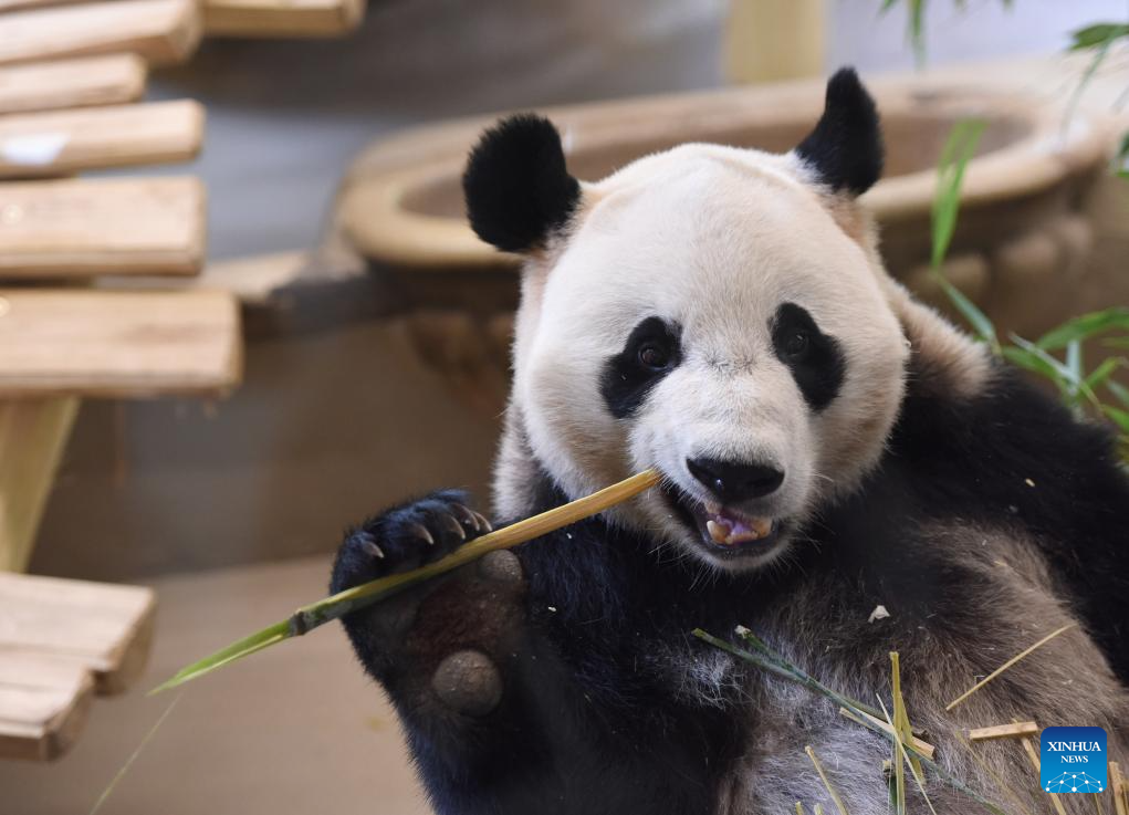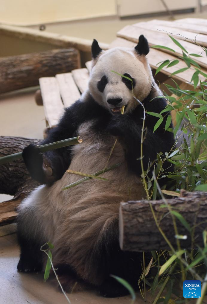 A welcoming ceremony for the arrival of a new pair of gaint pandas from southwest China's Sichuan Province was held here on Wednesday. The pandas, male He Feng and female Lan Yun, were both born in 2020. They arrived at Vienna's Schoenbrunn Zoo on April 23 for a decade-long stay as symbols of friendship between China and Austria.