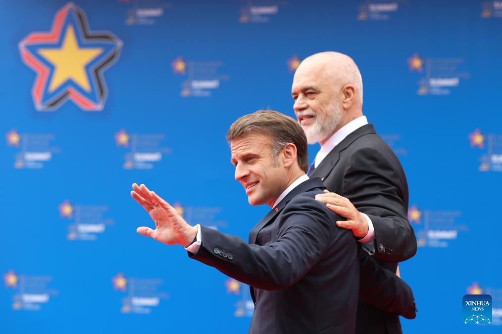 French President Emmanuel Macron (front) attends the 6th European Political Community (EPC) Summit in Tirana, Albania, May 16, 2025. (Xinhua/Zhao Dingzhe)