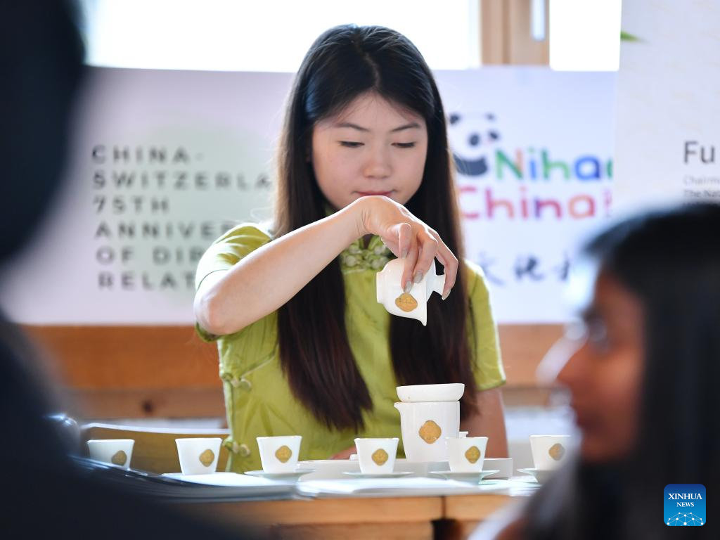 At an altitude of over 2,100 meters, the event called "Tea for Harmony -- Yaji Cultural Salon" featured traditional Chinese tea ceremonies alongside musical performances, including on the guzheng (Chinese zither), violin, Swiss alphorn, and accordion, as well as yodeling.