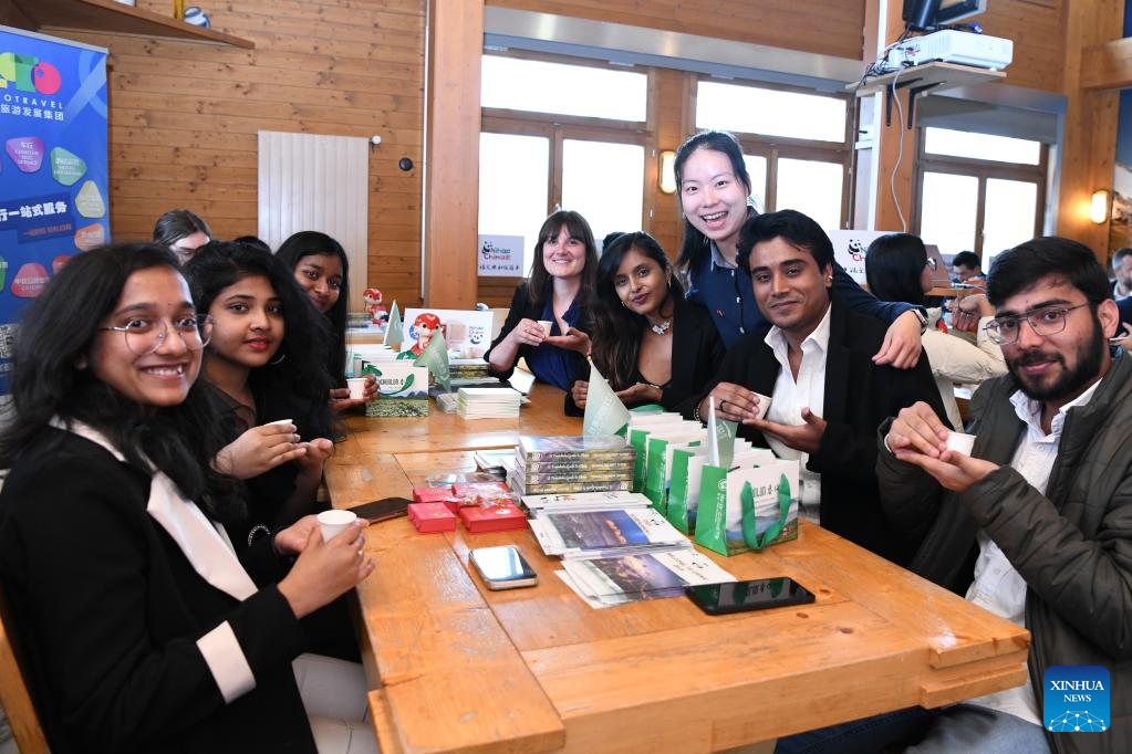 BERN, Switzerland, May 22 (Xinhua) -- On a crisp spring afternoon, nearly a hundred tea lovers from around the world gathered not in a traditional teahouse, but on the windswept peak of the Grindelwald-First mountain in Switzerland's Bernese Oberland. The fragrant aroma of jasmine and roasted oolong mingled with the alpine air in a cross-cultural celebration of International Tea Day, held on Wednesday.