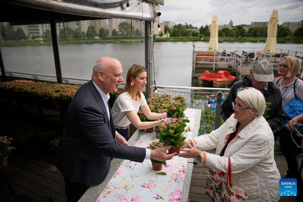 Hundreds of potted flowers were given free in Warsaw to celebrate the Polish Mother's Day, which fell on Monday. (Photo by Jaap Arriens/Xinhua)