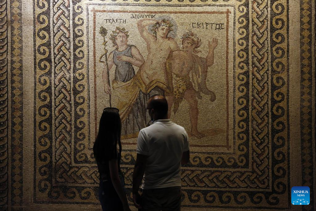 Tourists watch a giant mosaic work at Zeugma Mosaic Museum in Gaziantep, Türkiye, May 24, 2025. (Mustafa Kaya/Handout via Xinhua)