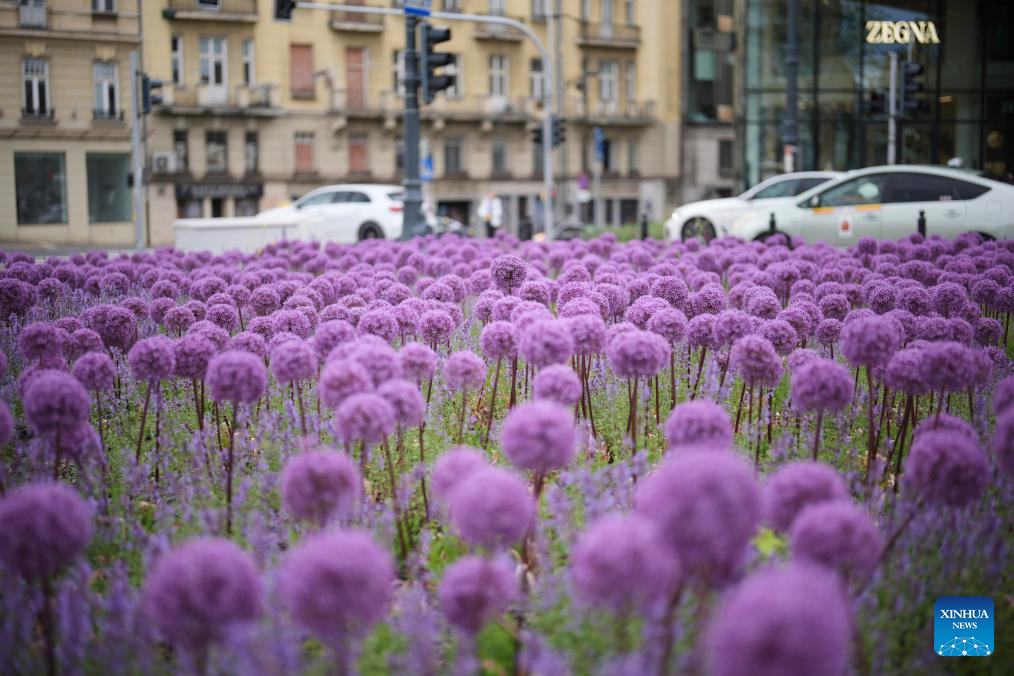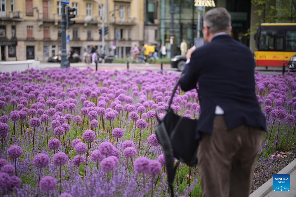 A man takes photos of ornamental garlic flowers in Warsaw, Poland on May 29, 2025. (Photo by Jaap Arriens/Xinhua)