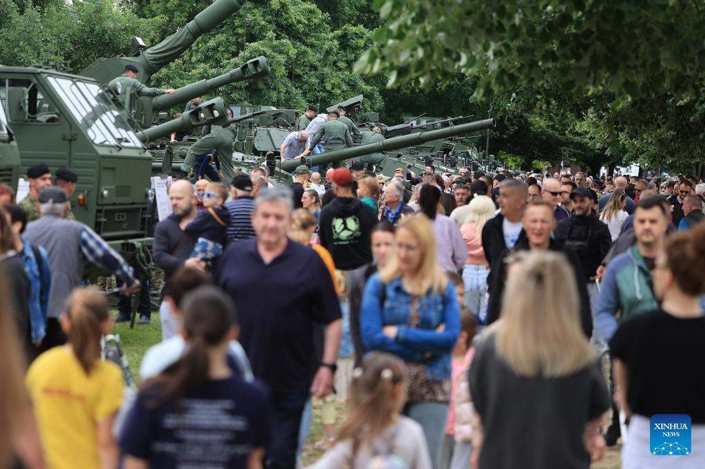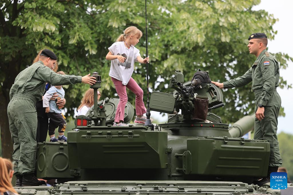 A military exhibition is held to mark the Statehood Day at the Jarun Lake in Zagreb, Croatia, on May 30, 2025. (Marko Prpic/PIXSELL via Xinhua)