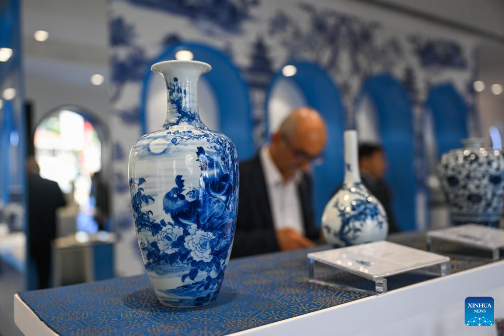 Chinese porcelain wares are seen at the official Jingdezhen porcelain flagship store in Istanbul, Türkiye, May 31, 2025. Türkiye and China on Saturday inaugurated the first official Jingdezhen porcelain flagship store in Istanbul, marking a step forward in cultural and economic ties through a strategic partnership between the Chinese city and Türkiye's historic ceramic hub, Iznik. The launch coincided with the signing of a cooperation agreement between Jingdezhen and Iznik, aimed at strengthening ceramic-focused exchanges between the two historic centers. The deal builds on a sister-city partnership established in 2021 and formalizes efforts to promote joint exhibitions, research, and trade initiatives. (Xinhua/Liu Lei)