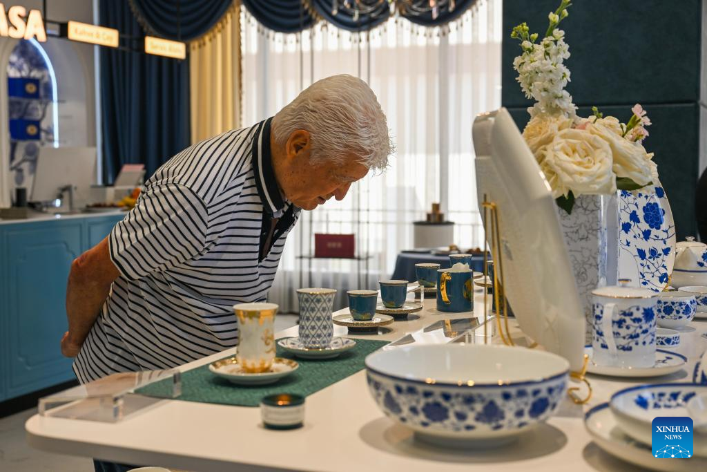 Customers look at Chinese porcelain wares at the official Jingdezhen porcelain flagship store in Istanbul, Türkiye, May 31, 2025. Türkiye and China on Saturday inaugurated the first official Jingdezhen porcelain flagship store in Istanbul, marking a step forward in cultural and economic ties through a strategic partnership between the Chinese city and Türkiye's historic ceramic hub, Iznik.