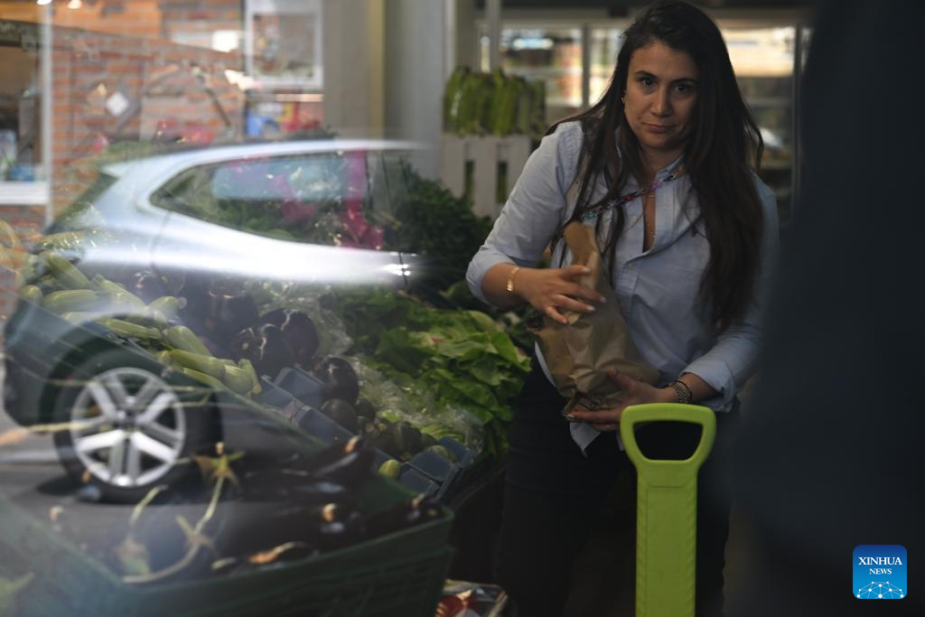 A woman shops at a supermarket in Brussels, Belgium, June 3, 2025. The Eurozone's annual inflation rate for May stood at 1.9 percent, down from 2.2 percent in April, bringing inflation back below the European Central Bank's (ECB) target of 2 percent, according to a flash estimate published Tuesday by Eurostat. (Photo by Gao Yi/Xinhua)