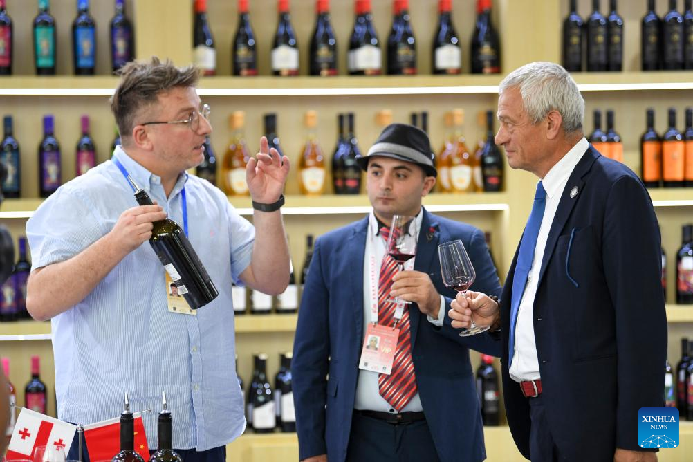 People taste wine during a wine-themed international conference and an expo in Yinchuan, northwest China's Ningxia Hui Autonomous Region, June 9, 2023. (Xinhua/Feng Kaihua)