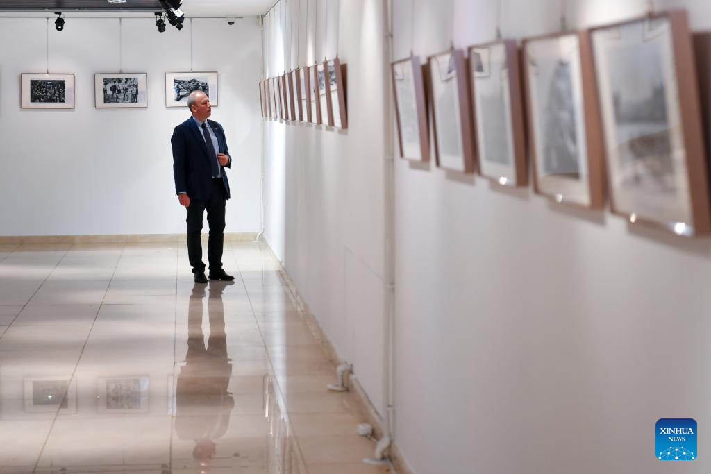 A man visits a photo exhibition marking the 80th anniversary of the victory of the Chinese People's War of Resistance Against Japanese Aggression and the World Anti-Fascist War at the China Cultural Center in Moscow, Russia, June 5, 2025. (Xinhua/Cao Yang)