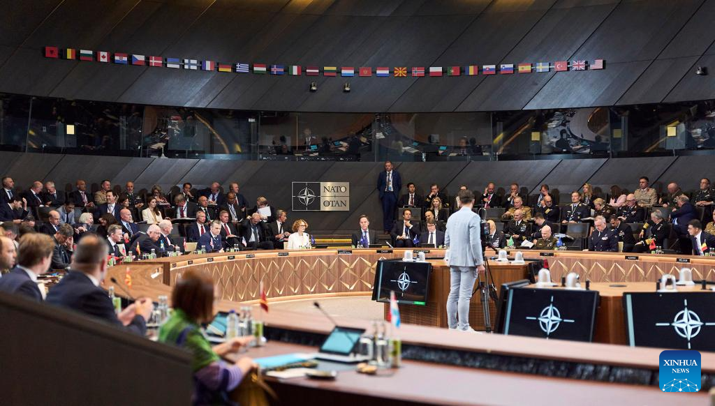 This photo taken on June 5, 2025 shows a view of the NATO defense ministers meeting at the NATO headquarters in Brussels, Belgium. NATO defense ministers meeting in Brussels on Thursday "broadly" agreed to pursue a significant increase in member states' military spending to 5 percent of GDP. However, sharp disagreements over the timeline and spending categories revealed deep divisions ahead of the alliance's upcoming summit in The Hague, scheduled for June 24-25. (NATO/Handout via Xinhua)