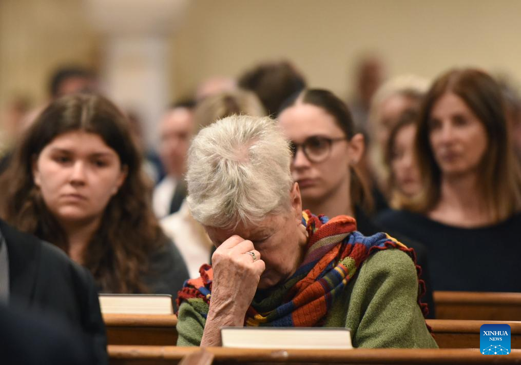 People attend a memorial ceremony at a church in Graz, Austria, on June 10, 2025. At least 10 people were killed in a school shooting in Austria's second-largest city of Graz, local media reported on Tuesday. (Xinhua/He Canling)