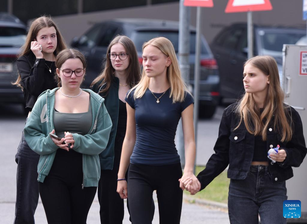 People leave after attending a memorial service in front of a school where a shooting occurred in Graz, Austria, June 11, 2025. (Xinhua/He Canling)