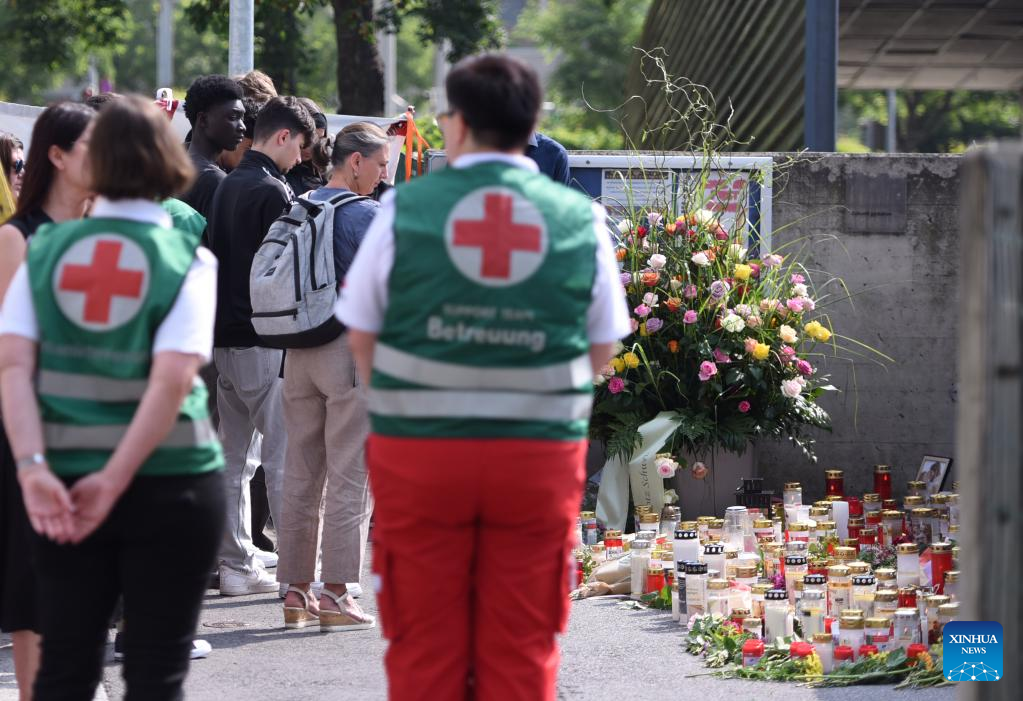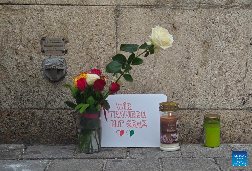 This photo taken on June 11, 2025 shows the venue of a memorial service in front of a school where a shooting occurred in Graz, Austria. (Xinhua/He Canling)