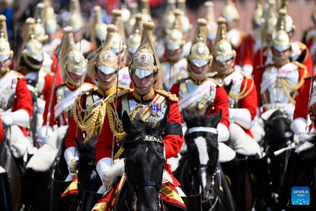 Britain's King Charles III attends the Trooping the Colour parade to honour him on his official birthday in London, Britain, on June 14, 2025. (Photo by Ray Tang/Xinhua)