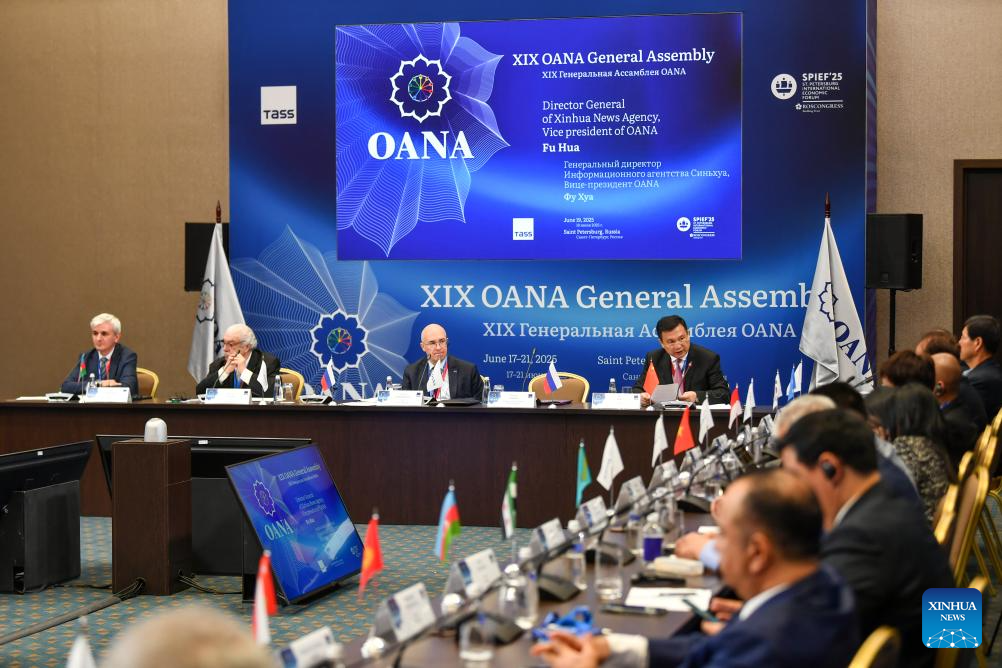 This photo shows a scene during the 19th General Assembly of the Organization of Asia-Pacific News Agencies (OANA) in St. Petersburg, Russia, June 19, 2025. The 19th General Assembly of the Organization of Asia-Pacific News Agencies (OANA) kicked off in St. Petersburg on Thursday.
