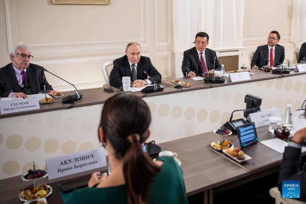 ST. PETERSBURG, June 20 (Xinhua) -- Russian President Vladimir Putin said late Wednesday that Russia and China share a broad spectrum of cooperation areas, and Russia is committed to strengthening all-around cooperation and exchanges with China.