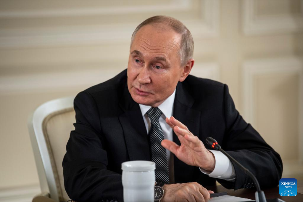 Russian President Vladimir Putin meets with heads of major international news agencies in St. Petersburg, Russia, June 18, 2025. (Xinhua/Cao Yang)