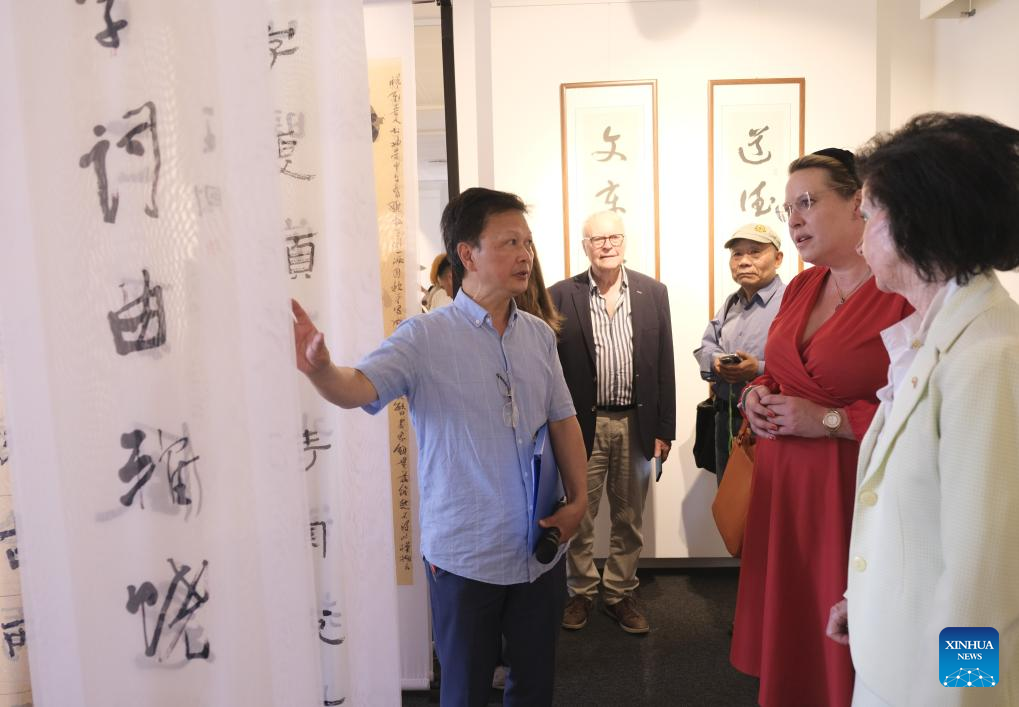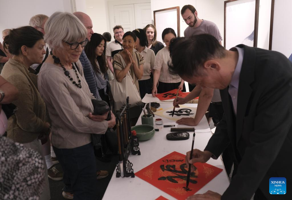 COPENHAGEN, June 21 (Xinhua) -- The China Cultural Center in Copenhagen (CCCC) on Saturday held the opening ceremony of the "Lanting Culture Salon - Chinese Calligraphy Exhibition," aimed at promoting cultural exchange between China and Denmark through the traditional art of Chinese calligraphy.