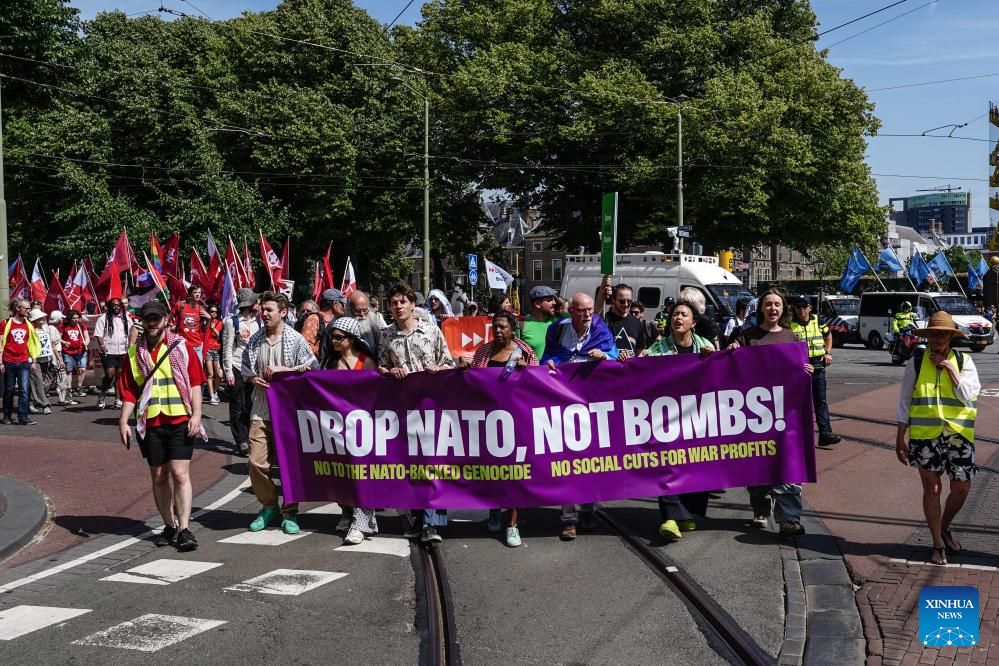 THE HAGUE, June 22 (Xinhua) -- NATO has become a driver of global conflict rather than a force for peace, prioritizing military expansion at the expense of public welfare, a U.S. anti-war activist said here on Sunday during a protest ahead of the alliance's annual summit.