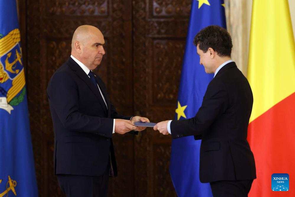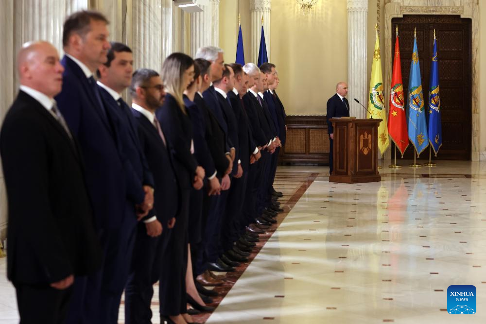 BUCHAREST, June 23 (Xinhua) -- Romania's new pro-European government, led by Prime Minister Ilie Bolojan, was sworn in Monday evening before President Nicusor Dan, marking the end of a period of political instability and interim leadership.