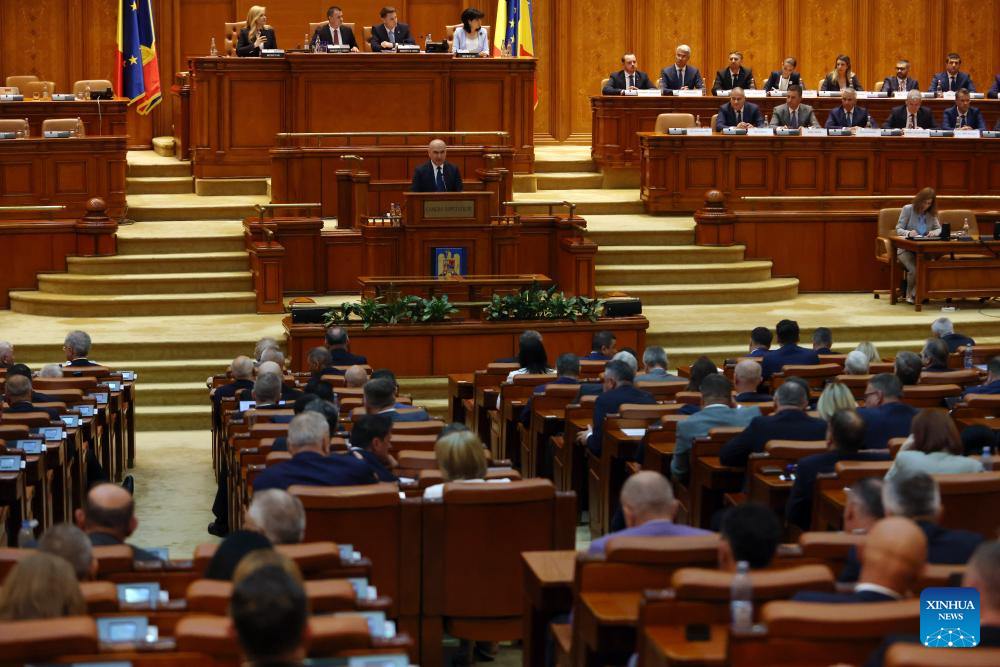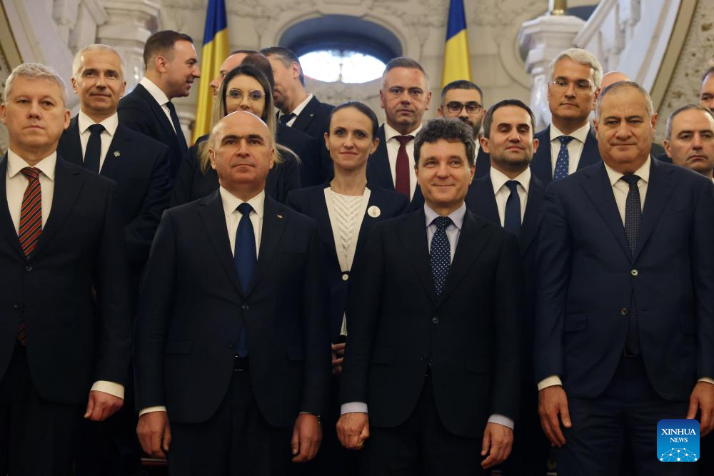 The new cabinet is backed by a broad ruling coalition comprising the Social Democratic Party (PSD), National Liberal Party (PNL), Save Romania Union (USR), and the Hungarian Democratic Union of Romania (UDMR). Earlier in the day, the coalition secured a strong parliamentary mandate with 301 votes in favor and only 9 against. (Photo by Cristian Cristel/Xinhua)