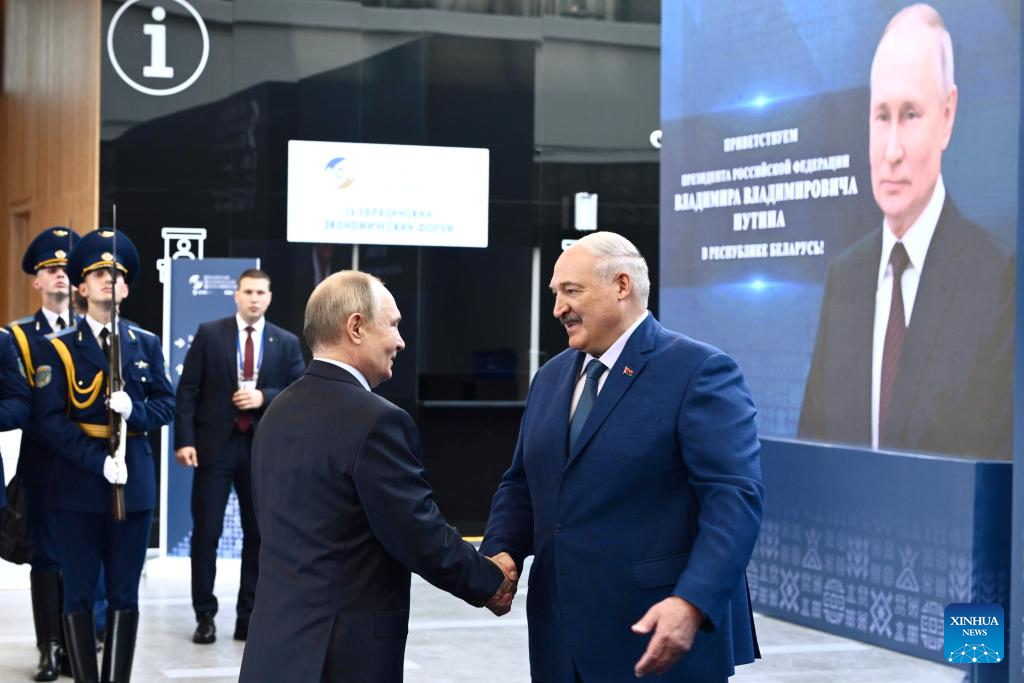 Belarus, which holds the EAEU chairmanship in 2025, is hosting the forum alongside the meeting of the Supreme Eurasian Economic Council, where the heads of state of EAEU member countries gather together. (Press Service of the President of the Republic of Belarus/Handout via Xinhua)