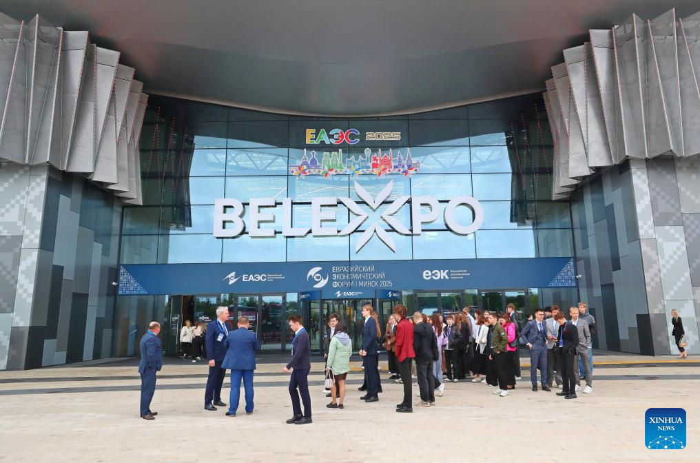 Belarus, which holds the EAEU chairmanship in 2025, is hosting the forum alongside the meeting of the Supreme Eurasian Economic Council, where the heads of state of EAEU member countries gather together. (Photo by Henadz Zhinkov/Xinhua)